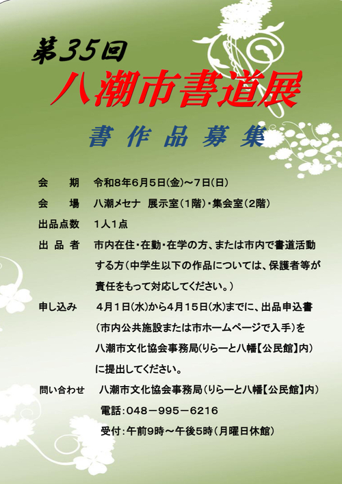 八潮市書道展出品作品の募集