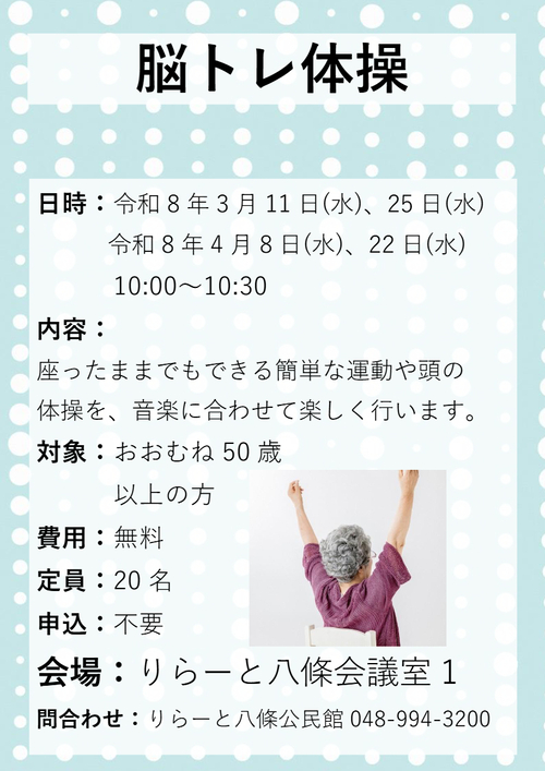 音楽に合わせて座ったままでもできる、簡単な運動や頭の体操を行う