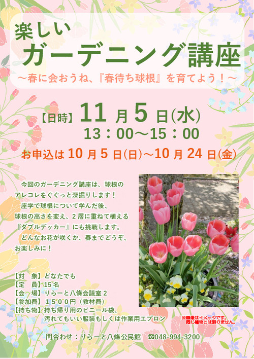 りらーと八條【公民館】楽しいガーデニング講座~春に会おうね、「春待ち球根」を育てよう!~