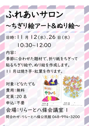 りらーと八條【公民館】ふれあいサロン~ちぎり絵アート&ぬり絵~