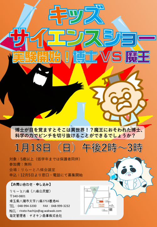 りらーと八條【公民館】キッズサイエンスショー~実験開始!博士vs魔王~