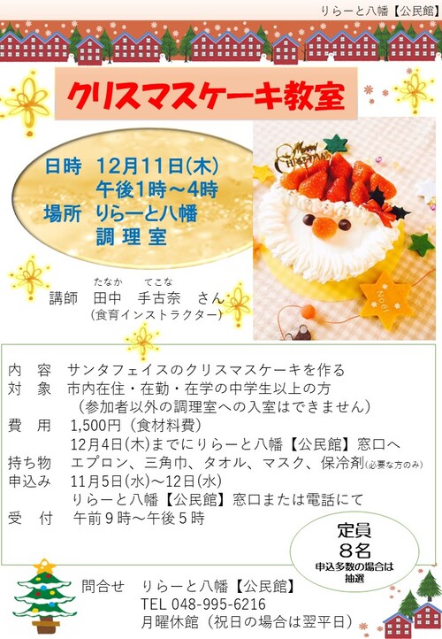 11月5日から26日まで窓口または電話でりらーと八幡【公民館】へ