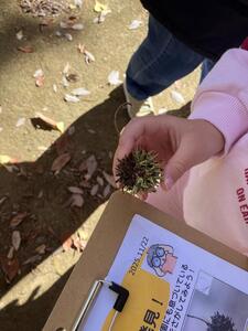 自然観察会では、どんぐり、モミジバフウ、ダイオウショウ、ギンナン、ピラカンサ、ランタナの実、