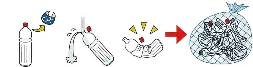 ペットボトルは本体とキャップを回収用ネット袋に入れてください