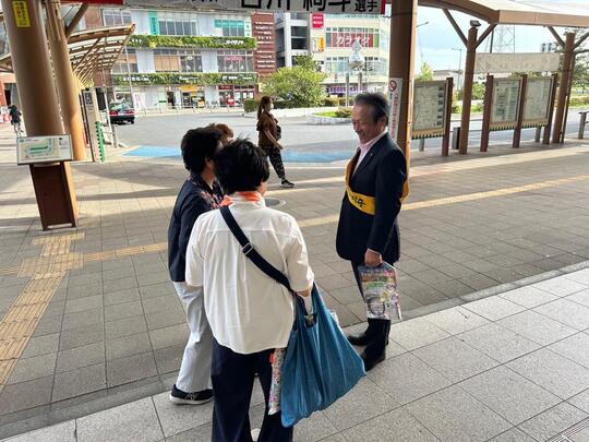 9月25日(木曜日)15時から八潮駅周辺にて、市職員、草加警察署職員、交通安全団体が協力して、歩行者、自転車利用者に対し、啓発用品や啓発チラシを配布するなど、交通安全を呼びかける街頭キャンペーンを実施しました。