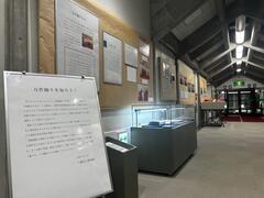 1階通路の西側では「絵図と空中写真にみる資料館周辺の変遷」、「資料館開館を伝える広報」、「資料館のあゆみ」を展示しています。