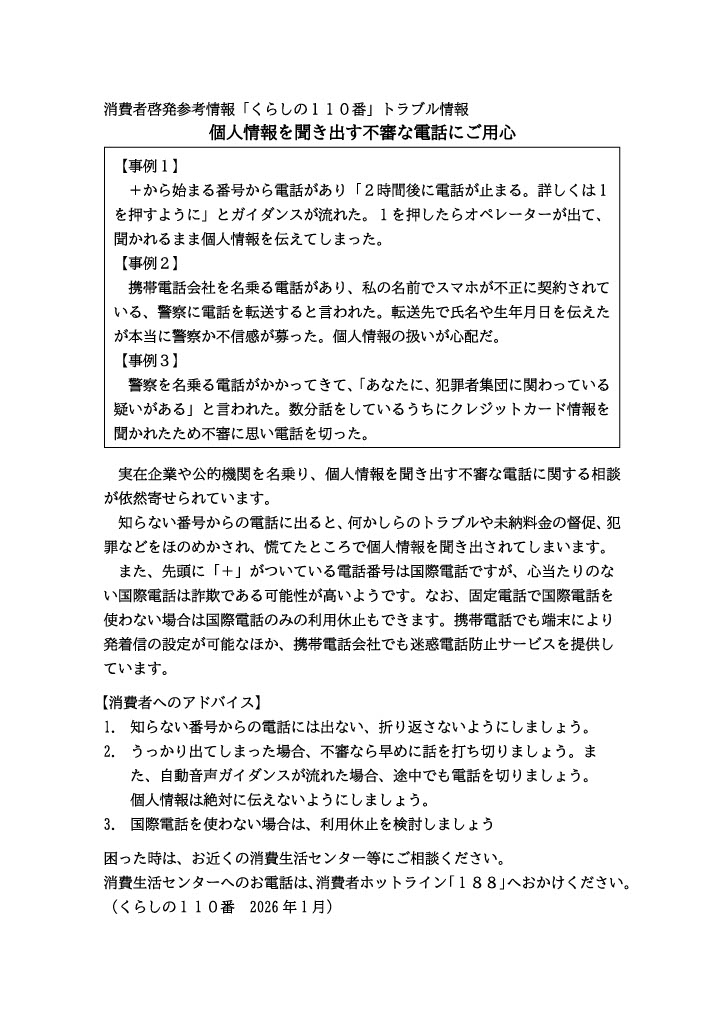 1月 個人情報を聞き出す不審な電話にご用心(PDF:857KB)