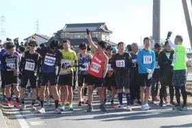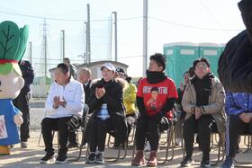 開会式に出席するゲストランナーの皆さん(左から2番目から市橋さん、M高史さん、国士舘大学駅伝監督小川さん)