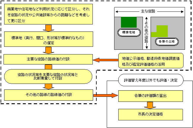 固定資産の価格は、総務大臣が定めた「固定資産評価基準」に基づいて評価され、市長がその価格を決定し、固定資産課税台帳に登録します。