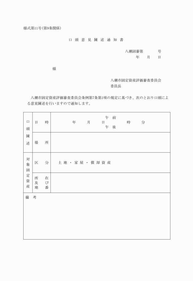 (11) 口頭意見陳述通知書(条例第7条第1項の通知書) | |