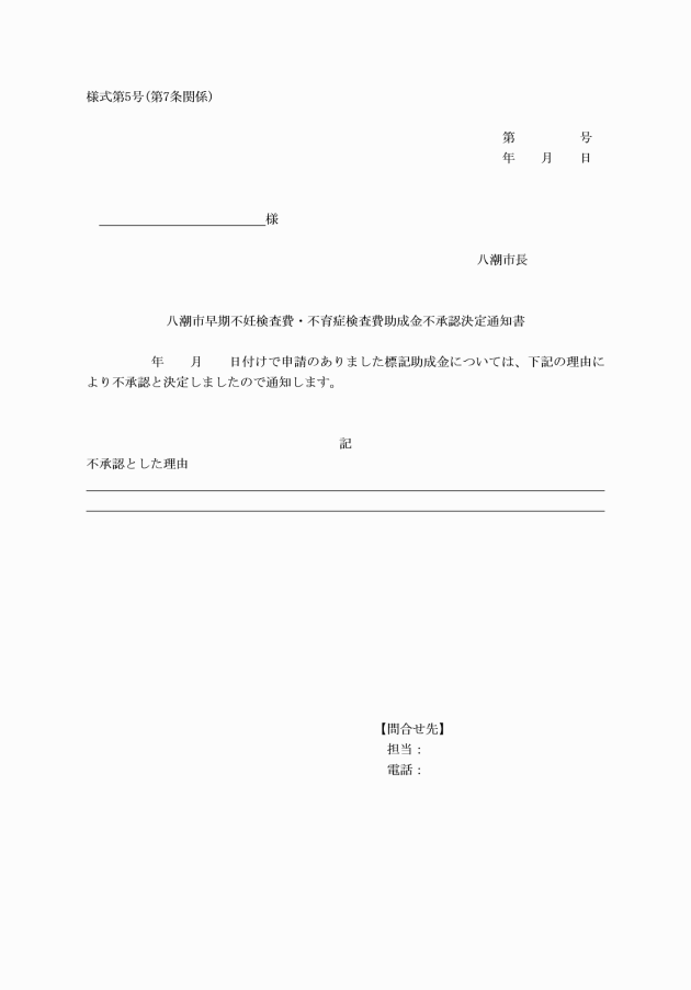 第6条 不妊検査費又は不育症検査費の助成を受けようとする者は、八潮市早期不妊検査費・不育症検査費助成金交付申請書兼請求書(様式第1号)に次に掲げる書類を添えて市長に申請しなければならない。
