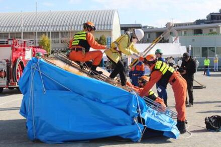 11月16日(日曜日)、大瀬小学校で「令和7年度八潮市総合防災訓練」を実施し、自主防災組織2団体・八潮こども防災マイスター・協力関係機関・災害時応援協定締結事業者などを合わせ、約460人が参加しました。「東京湾北部を震源とする強い地震が発生し、市内全域で道路や家屋などが被害を受けている」という想定のもと、捜索・救出救助訓練、炊き出し訓練、避難所開設訓練などを行いました。