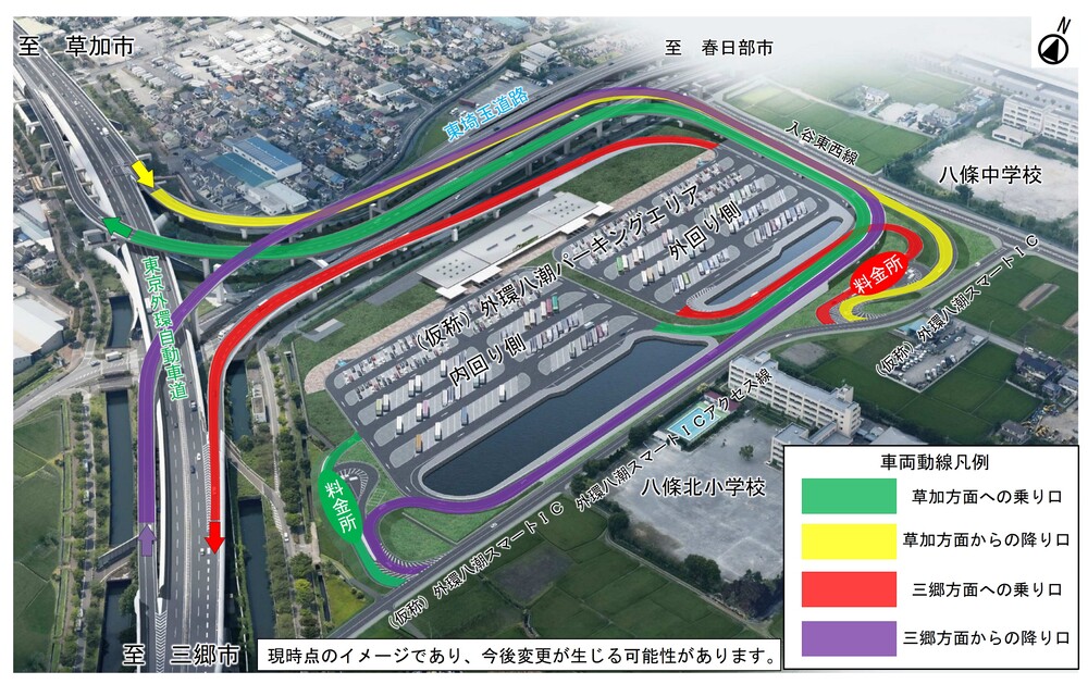 (仮称)外環八潮パーキングエリアおよび(仮称)外環八潮スマートインターチェンジ 完成イメージ図