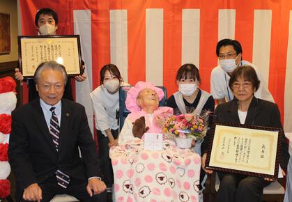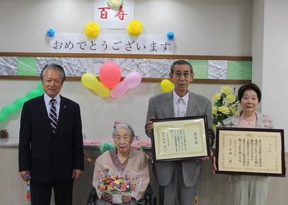 今年度中に100歳になられる市民の方に、長寿を記念し、記念品を贈呈するなどお祝いをしました。