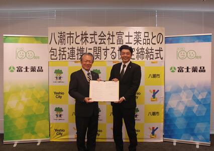 28日に本庁舎において「株式会社富士薬品との包括連携に関する協定締結式」を行いました。