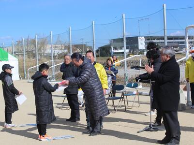 マラソン大会では、中川沿いのコースにて白熱したレースが繰り広げられました。
