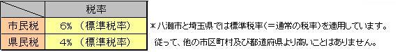 注記1)八潮市と埼玉県では、標準税率(=通常の税率)を適用しています。従って、他の市区町村および都道府県より高いことはありません。