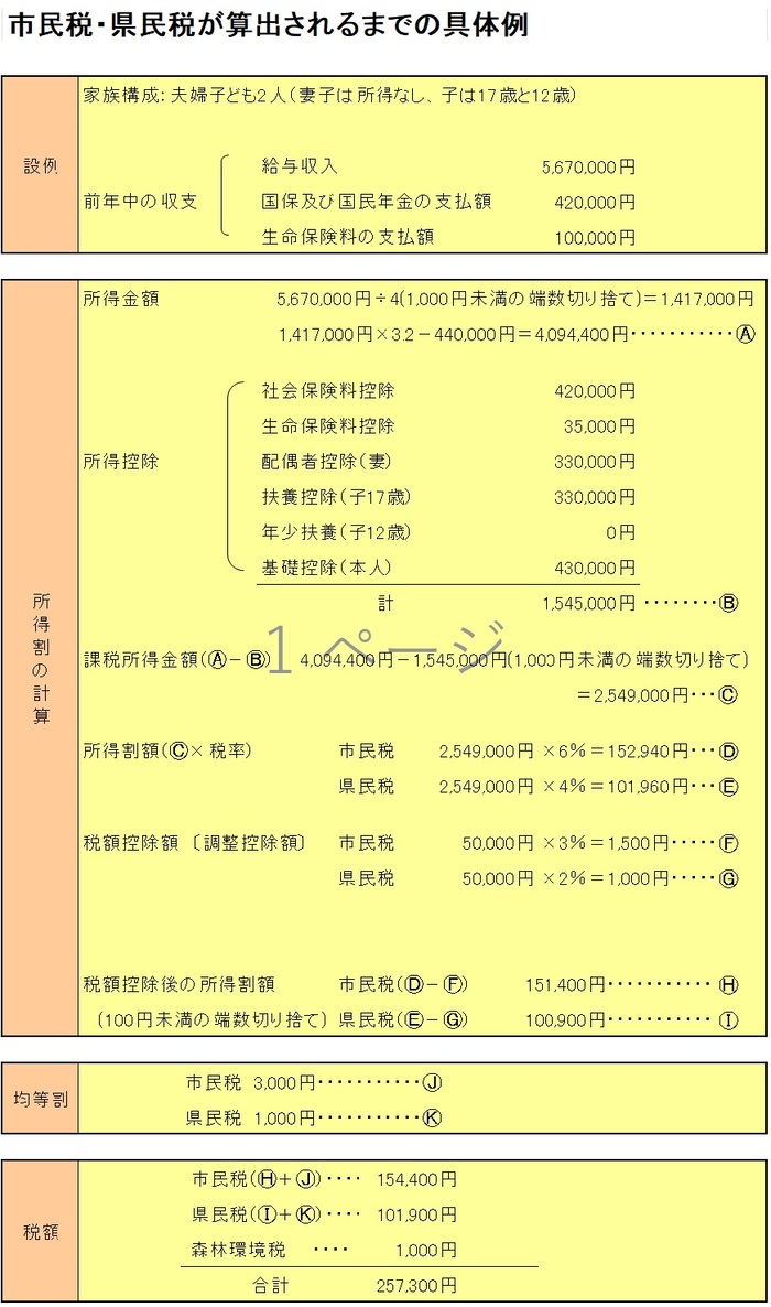 市民税・県民税が算出されるまでの具体例