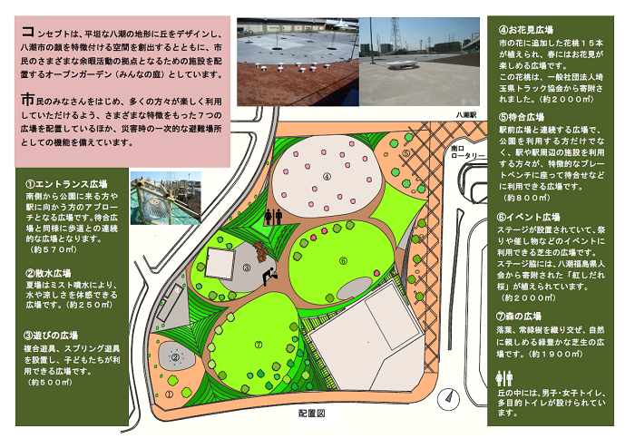 平成27年4月に開園した、約1.4haの面積を有する駅前公園です。