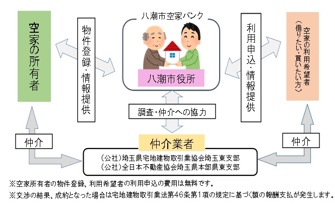 八潮市空家バンクは、市内に空家等をお持ちの所有者と、空家等を買いたい、借りたい利用希望者を結びつけ、空家の利活用を促進する制度です。物件の掲載情報は、国土交通省に採択された、アットホーム株式会社及び株式会社LIFULLの2社の全国版空き家・空き地バンクのサイトを介して閲覧可能です。